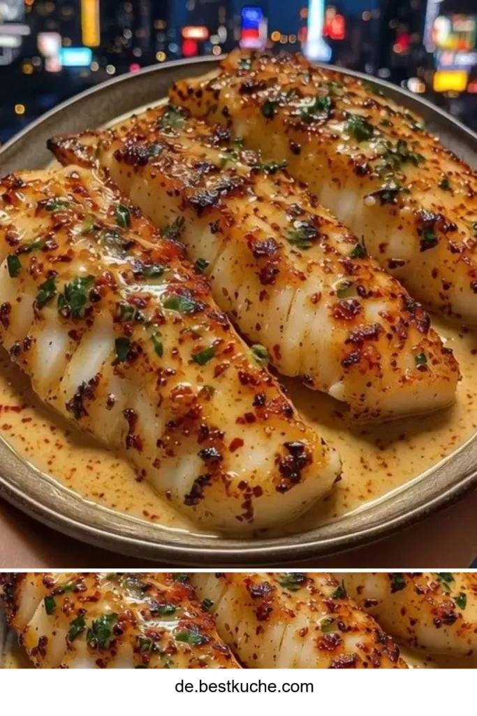 Ich hätte nie gedacht, dass dieses einfache Gericht so begeistern würde: Knoblauchbutter-Kabeljaustreifen mit süß-scharfer Chili-Limetten-Sauce sind nicht nur geschmacklich ein Hit, sondern auch gesund, kalorienarm und natürlich eine tolle Wahl für die Familie. Wenn du auf der Suche nach einem schnellen, nahrhaften Gericht bist, das beim Abnehmen hilft und das Immunsystem stärkt, dann ist dieses Rezept genau richtig — vergleichbar mit einem anderen schnellen Favoriten wie einem einfachen Knoblauchspaghetti-Rezept, das ich oft als Beilage verwende.