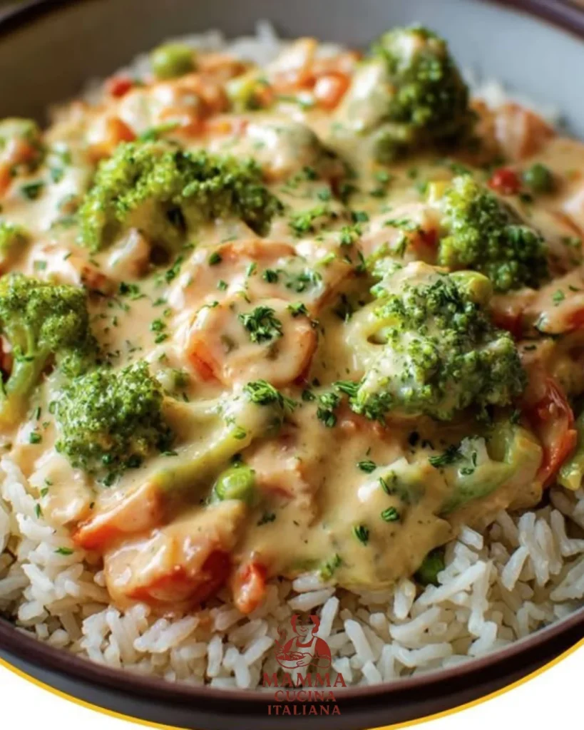 Selbstgekocht heißt oft: bessere Kontrolle über Kalorien, Fett und versteckten Zucker. Dieses Gericht kombiniert langsame Energiequellen aus Reis mit reichlich Gemüse und einer cremigen Frischkäsesauce — gesund, einfach, schnell und (bei kleinen Anpassungen) kalorienarm. Es eignet sich gut für Familien, Fitness-Anhänger und alle, die unkompliziert gesund essen möchten.