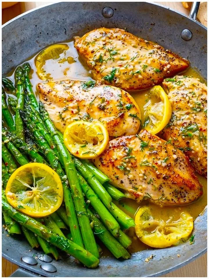 Einfaches Zitronen-Dill-Butter-Knoblauch-Hähnchen und Spargel – Ein Familienrezept für jeden Tag